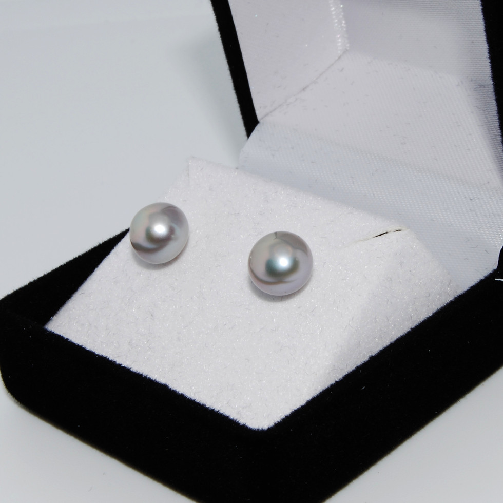 Silver Button Pearl Studs